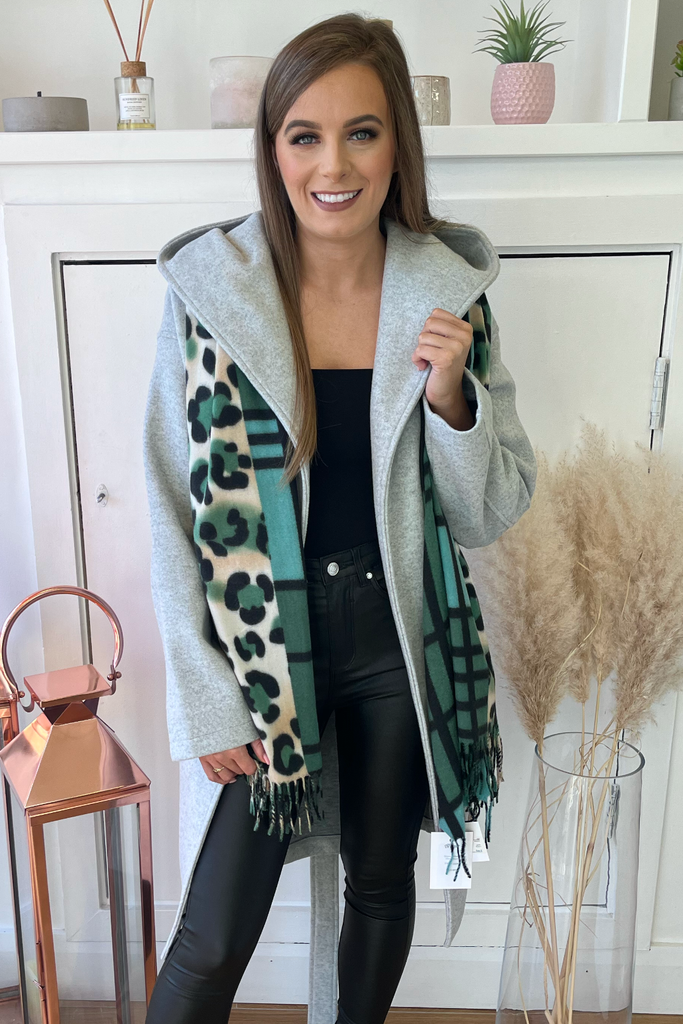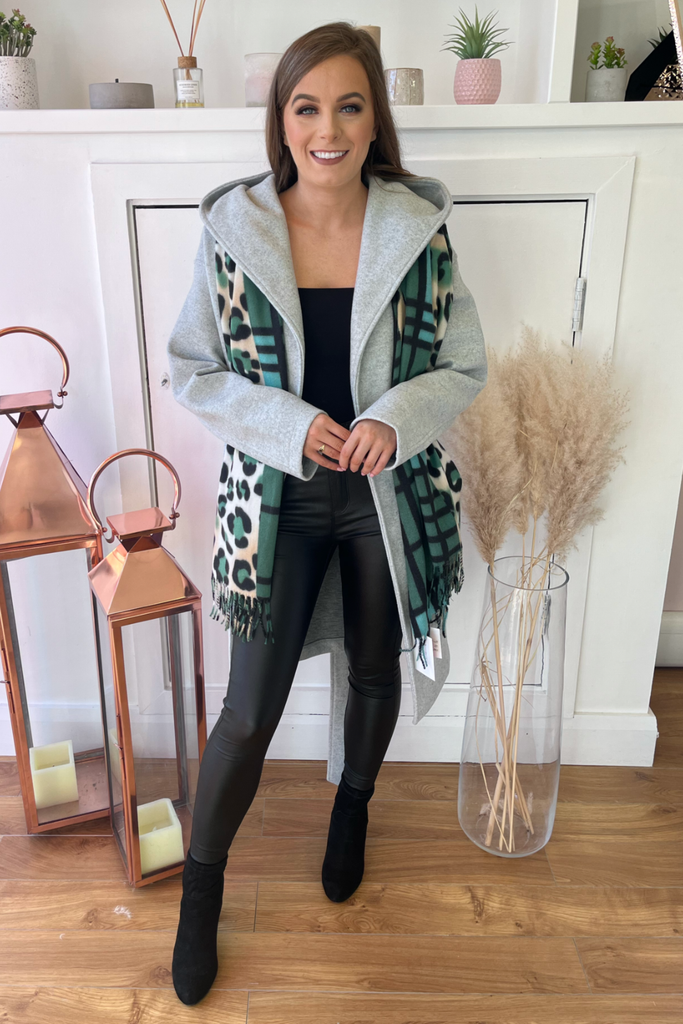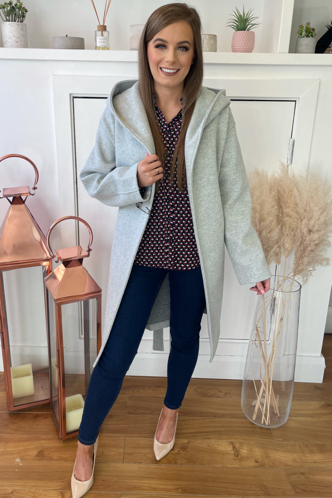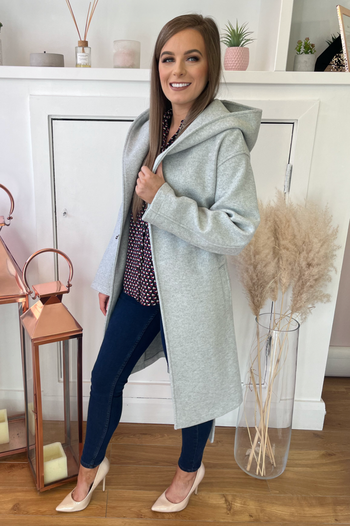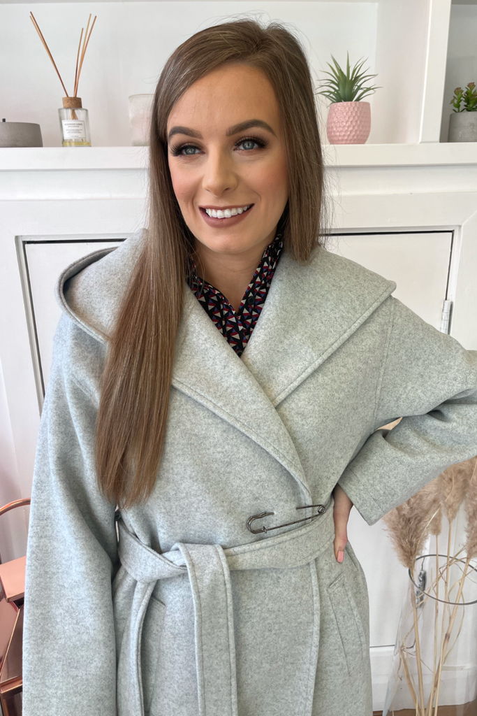 Grey Wrap Hooded Coat