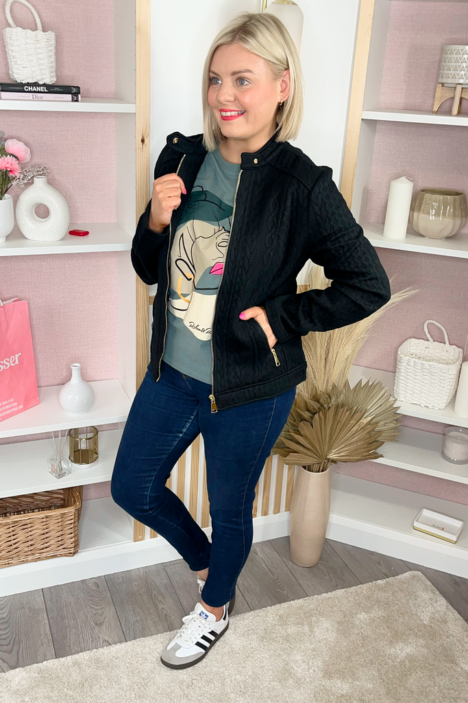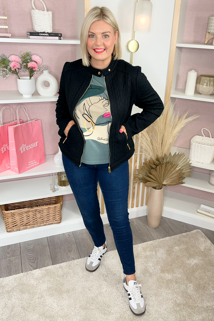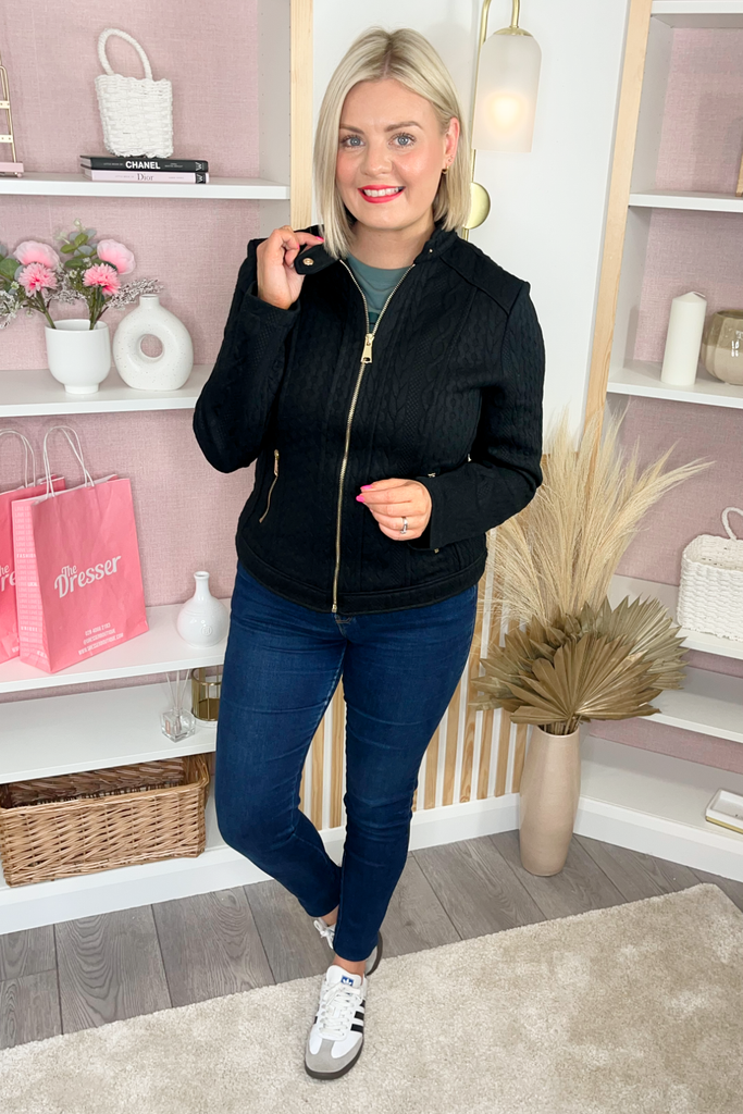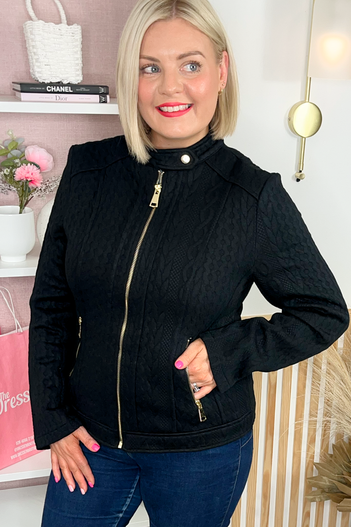 Sculpted quilted shorter length jacket with zipped closure and pockets. This style is a mid-weight and super soft feel. With slightly raised neckline and button closure at the neck