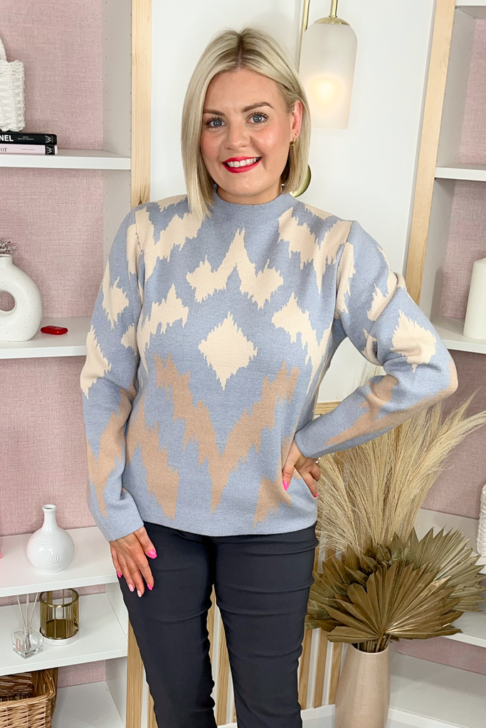 Luxurious sweater in a mix of grey and taupe, with slightly raised neckline