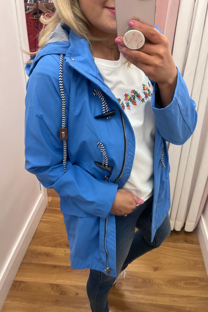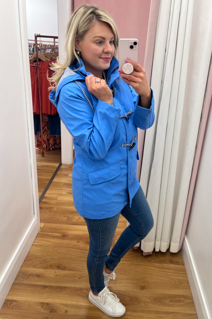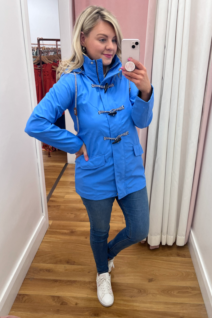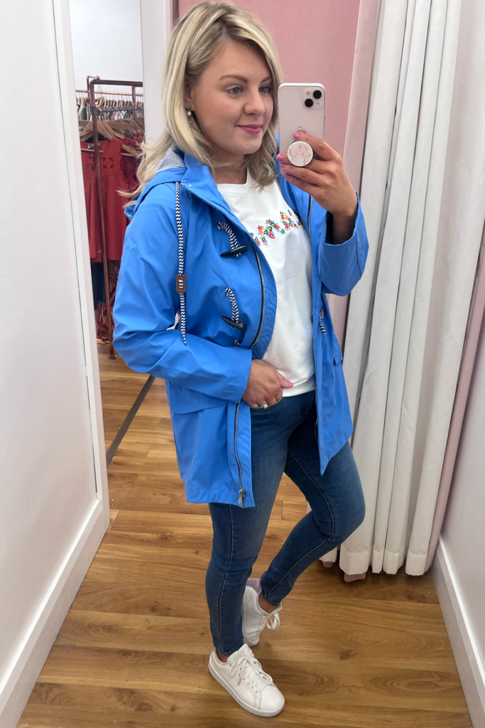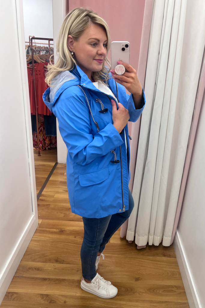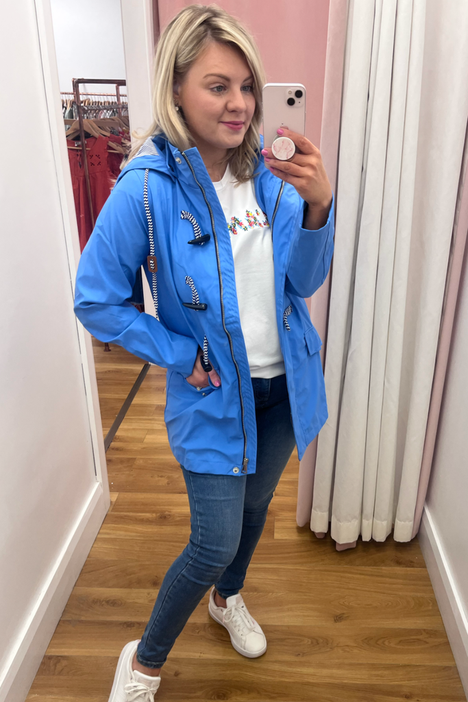 This bright and beautiful rain mac is an Irish weather essential no matter the season! It is a shower resistant PU coated style and is fully lined.
