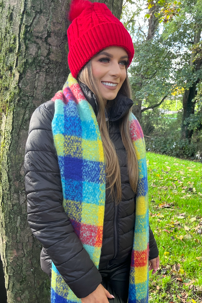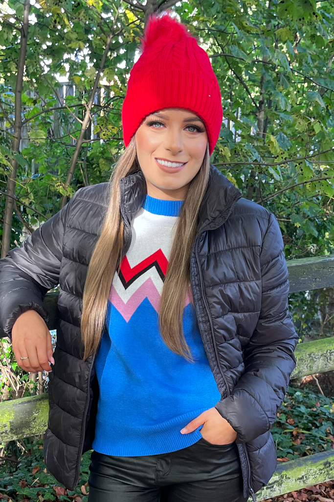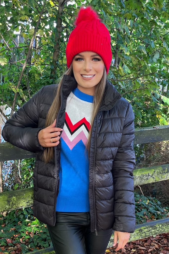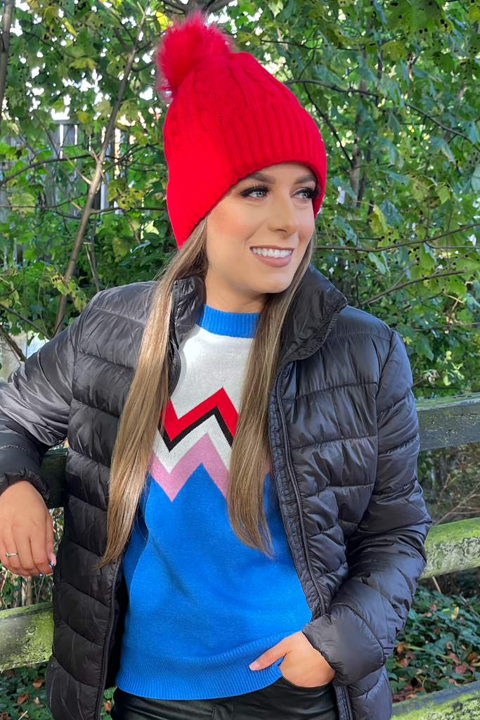 Cable knit bobble hat with faux fur lining, turned up front, finished with a faux fur bobble. The perfect accessory to every outfit this Winter!
