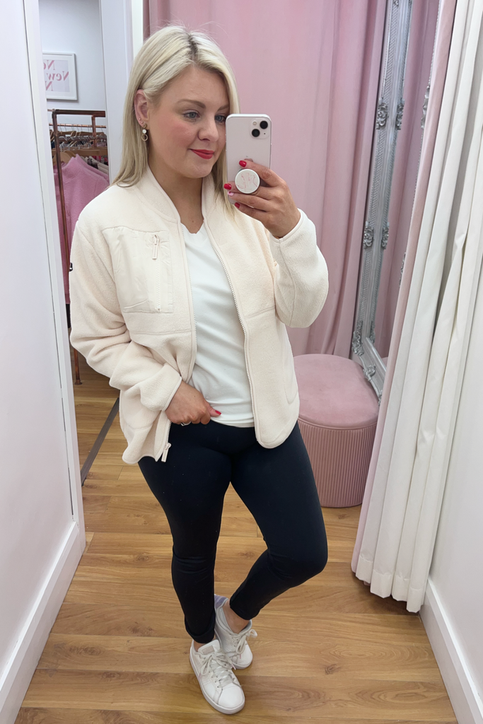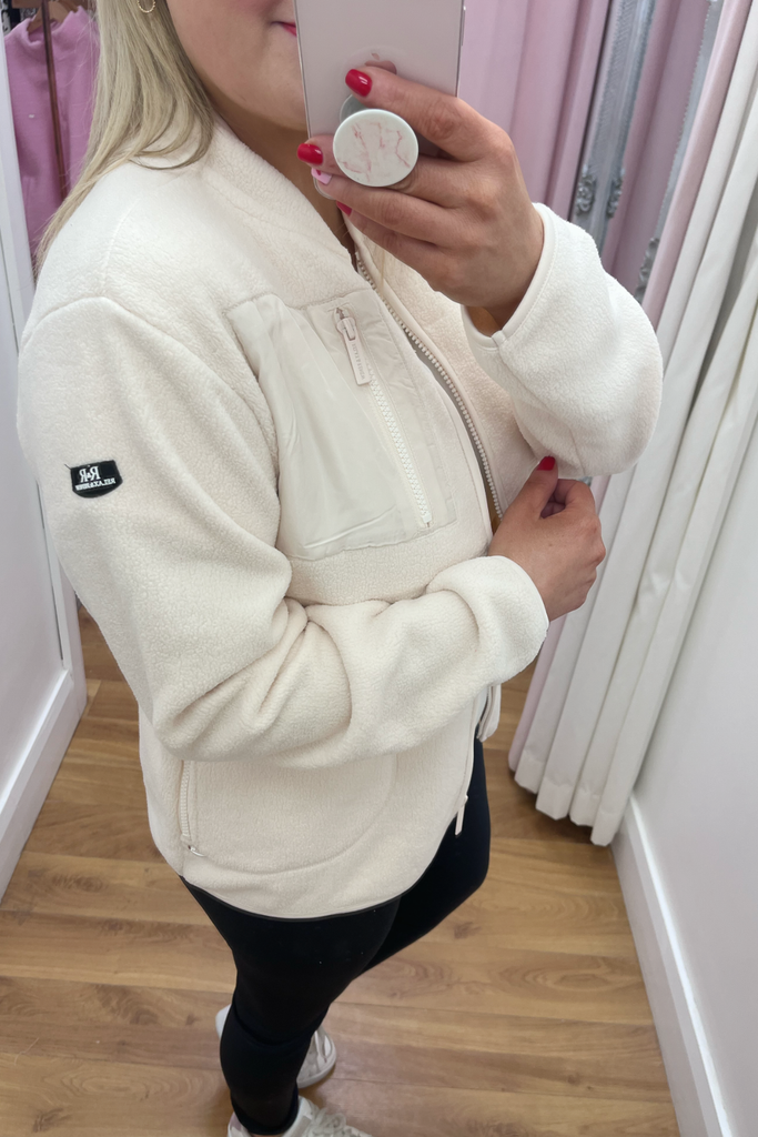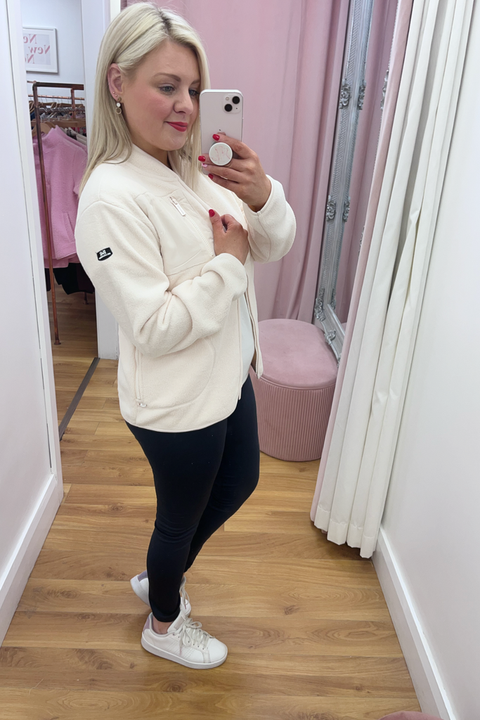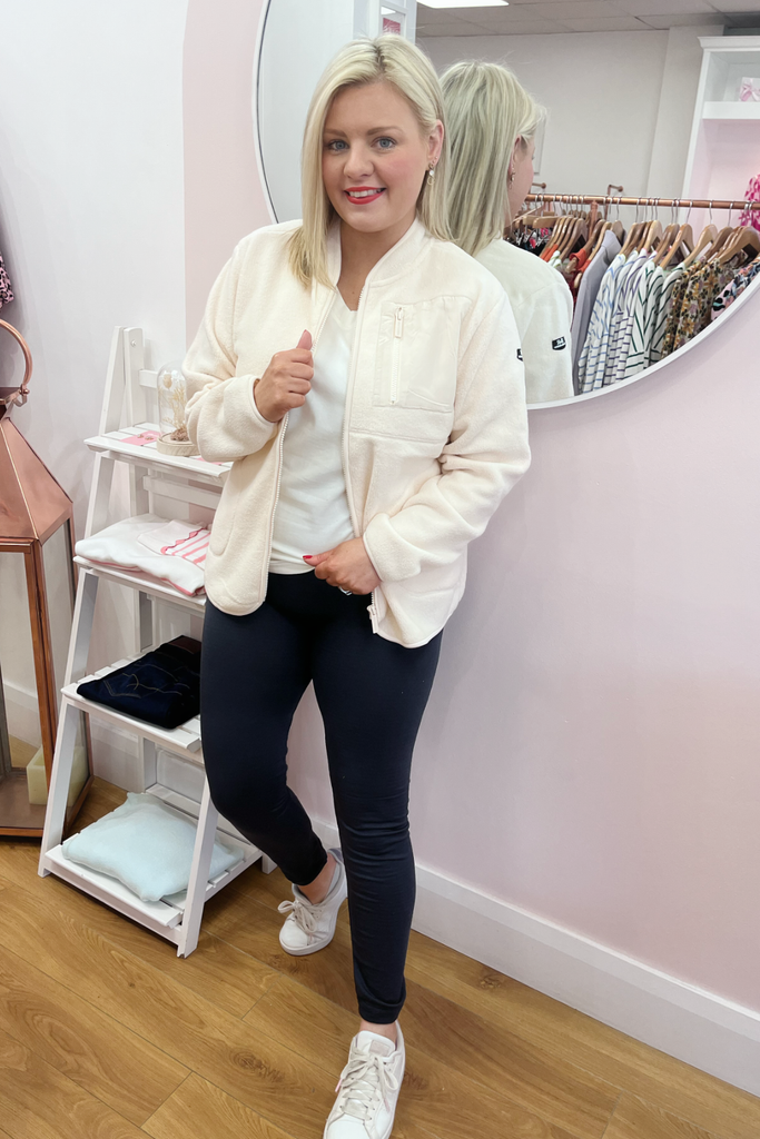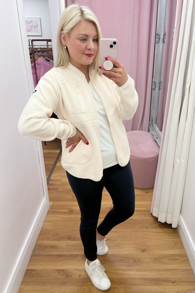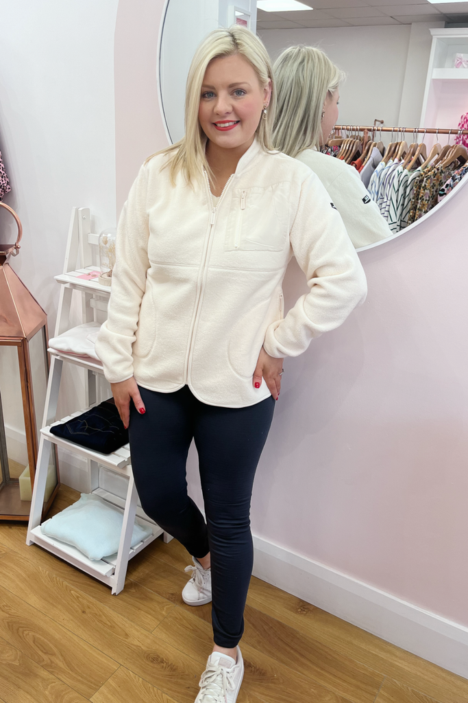 Neutral cream zipped fleece, perfect for adding a cosy touch to your outfit while providing functionality with the zipper closure. The Catherine also comes in a bold coral neutral cream colour.